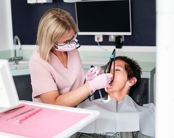 In einer regelmäßigen Vorsorge bei Ihrer Zahnärztin liegt Ihre Chance auf eine dauerhafte Mund- und Zahngesundheit.